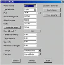 Architects are coming up with more and more complex roof designs these days, and we recognize that not all roofs are simple hip and valley roofs. There are more roofs with dormers, dutch gables, dropped eaves, cut-out sections etc, so we have developed a whole menu of features allowing you to modify the roof to suit these designs. The important thing to remember here is the fact that the software is constantly updating the areas and lengths when inserting new features, so there is no need to manually have to add a length of new ridge everytime a new dormer is inserted for instance.