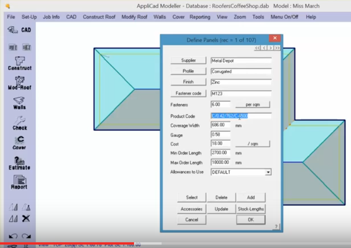 Before you can generate a panel cutting list of your products, they must exist in the Roof Wizard system. This is easily achieved by defining a new panel from the Set-Up > Metal Panels option. This tutorial takes you through the basic steps and highlights the important things to consider.