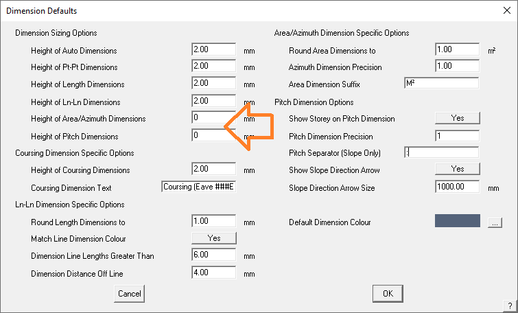 Check that all cells have a value in it, especially those indicated below, and select [OK]. We suggest that the appropriate text height be 2mm. This writes a new file RoofDef.csv to the..\User folder and the table should start printing sheet lengths again.