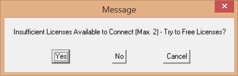 If you select [Yes] then the software will try to free the license up. If it doesn’t find any other sessions open it will close the conflicting 'ghost' session it thinks is already open, reset the license counter and then open the new session.